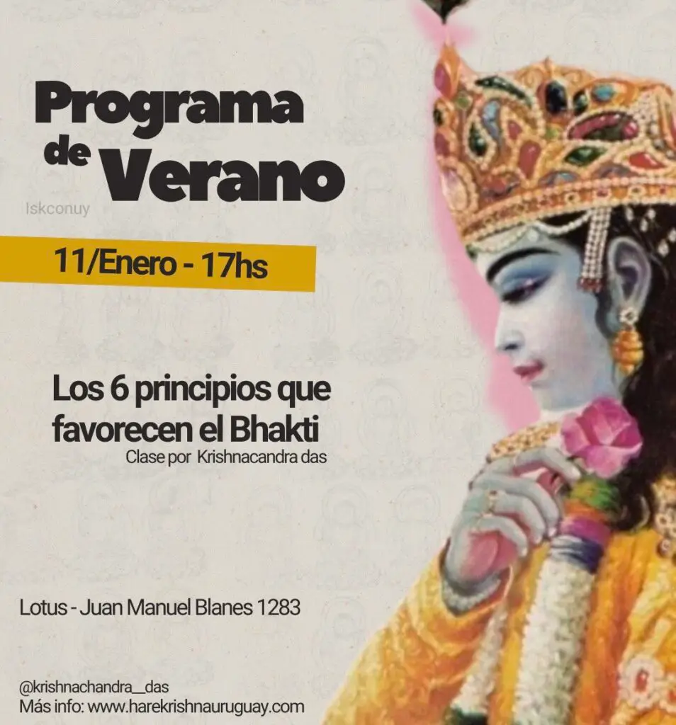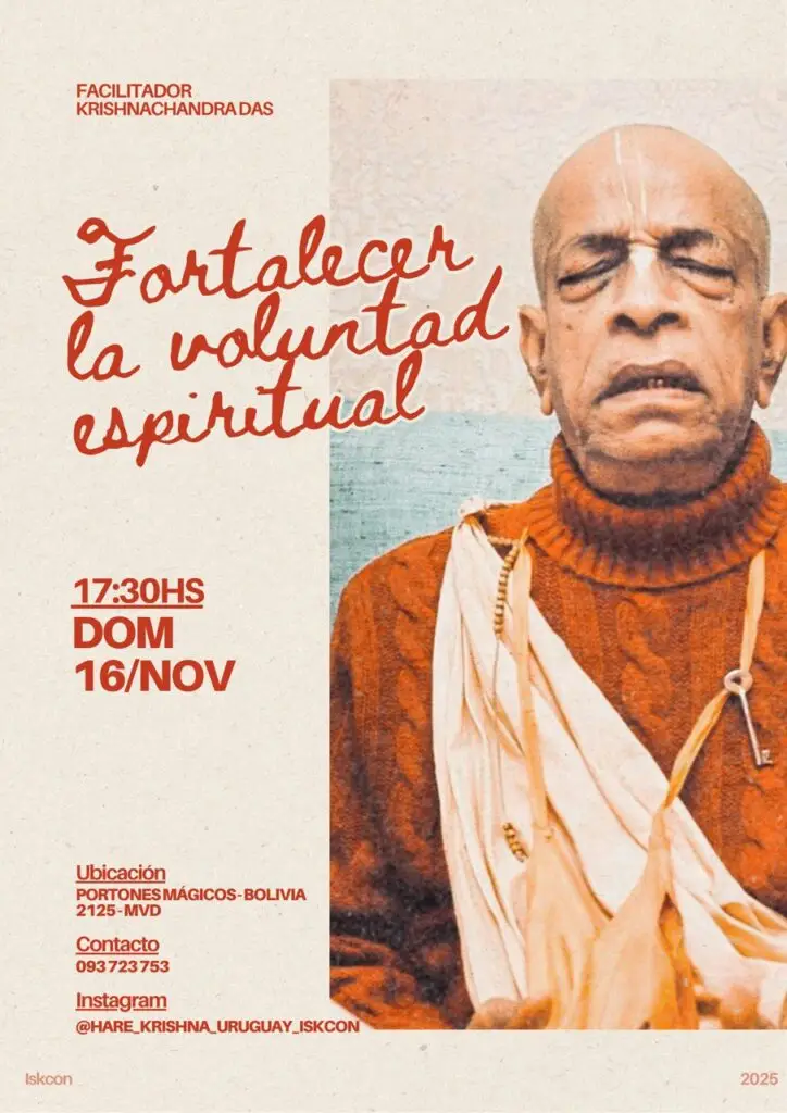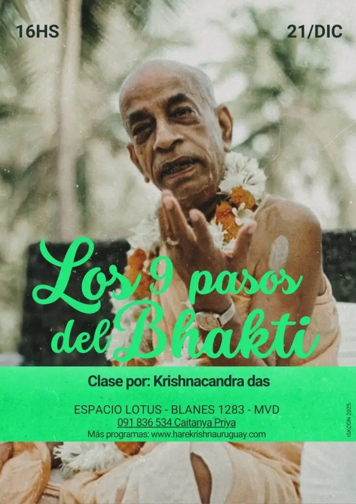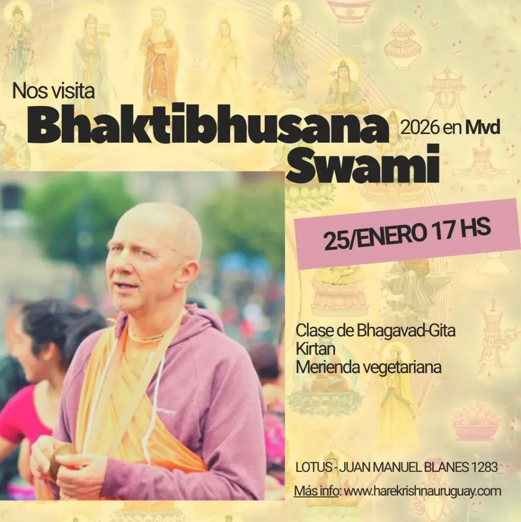 Eventos 2025 Agosto FESTEJAMOS BALARAM 2025 by Krishnachandra Das Discípulo de Bhaktibhusana Swami Quiero ir FESTEJAMOS JANMASTAMI 2025 by Krishnachandra Das Los esperamos! Quiero ir Setiembre Próximamente en uruguay by Jananivas Das Discípulo de Krsna Ksetra Maharaj Quiero ir Próximo encuentro! by Jananivas Das Los esperamos! Quiero ir Octubre Próximo encuentro! Sadhu Sanga Los esperamos! Quiero ir Próximo encuentro! Govardhan Puja Los esperamos! Quiero ir próximamente en punta del este! by Krishnachandra Das Los esperamos! Quiero ir Próximamente en Punta del Este! by KrishnaChandra Das Los esperamos! Quiero ir Próximo encuentro! Vyasa Puja de Srila Acaryadeva Los esperamos! Quiero ir Noviembre Próximo encuentro! Fortaleciéndonos! Los esperamos! Quiero ir Mega encuentro! Recordando con Malati devi dasi Los esperamos! Quiero ir Diciembre Próximo encuentro! Domingo de Bhagavad-Gita Los esperamos en Lotus! Quiero ir Próximo encuentro! Los 9 pasos del Bhakti Los esperamos en Lotus! Quiero ir Enero Próximo encuentro! En verano nos encontramos a las 17hs! Los esperamos en Lotus! Quiero ir Próximo encuentro! Visita de Bhaktibhusana Swami desde Alemania! Clase en español. Los esperamos! Quiero ir Próximo encuentro! Parque del plata 18hs! Los esperamos!!! Quiero ir Febrero Próximo encuentro! Recibimos a Kamala devi dasi, devota y psicóloga. Los esperamos en Lotus! Quiero ir
